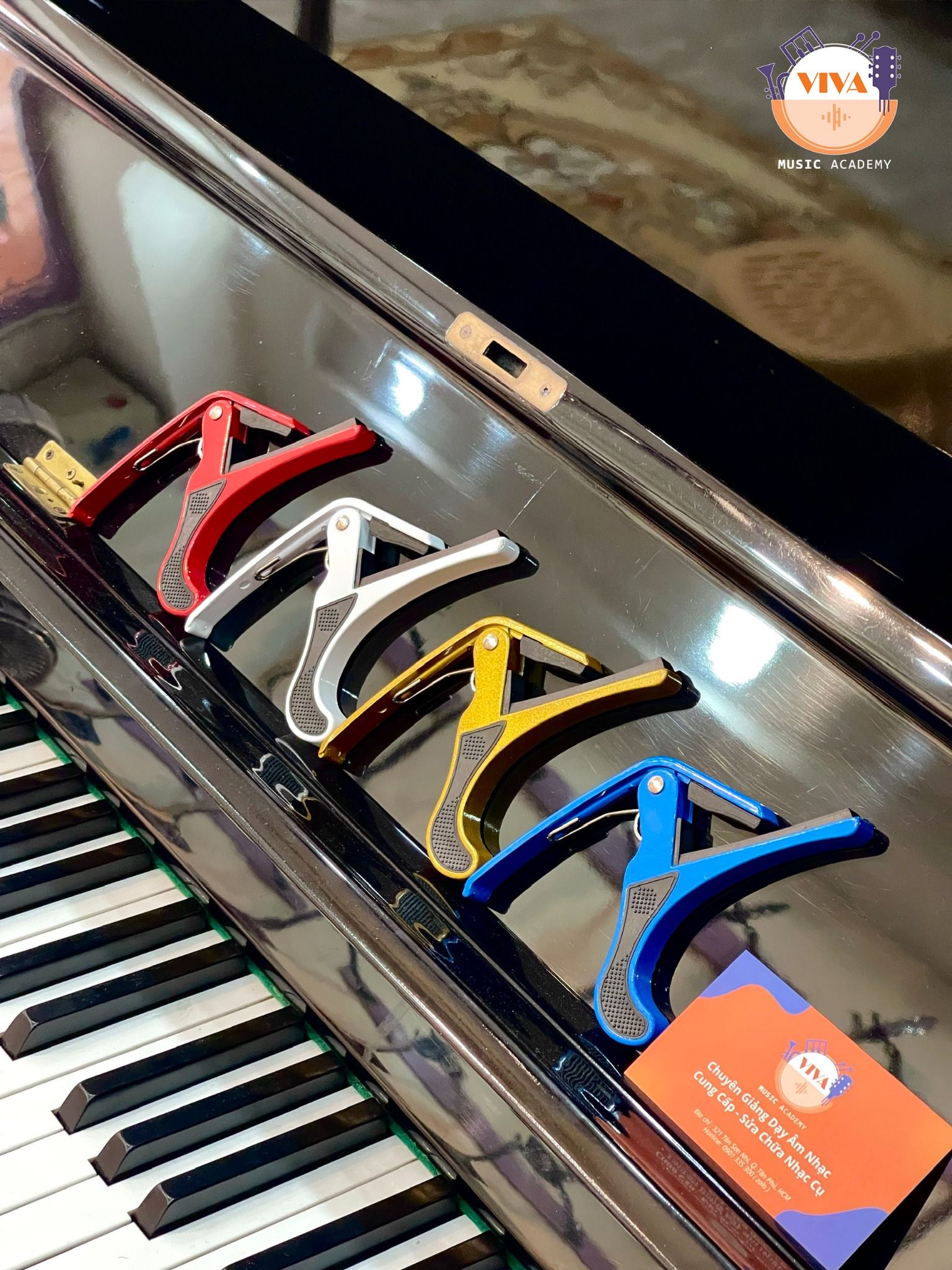 Tại VIVA Music Academy, khách hàng có thể dễ dàng tìm thấy nhiều mẫu capo đa dạng về màu sắc và phong cách. Từ những thiết kế đơn giản, tinh tế đến các mẫu hiện đại, cá tính, tất cả đều được lựa chọn kỹ lưỡng để đáp ứng nhu cầu thẩm mỹ và sử dụng của người chơi guitar.