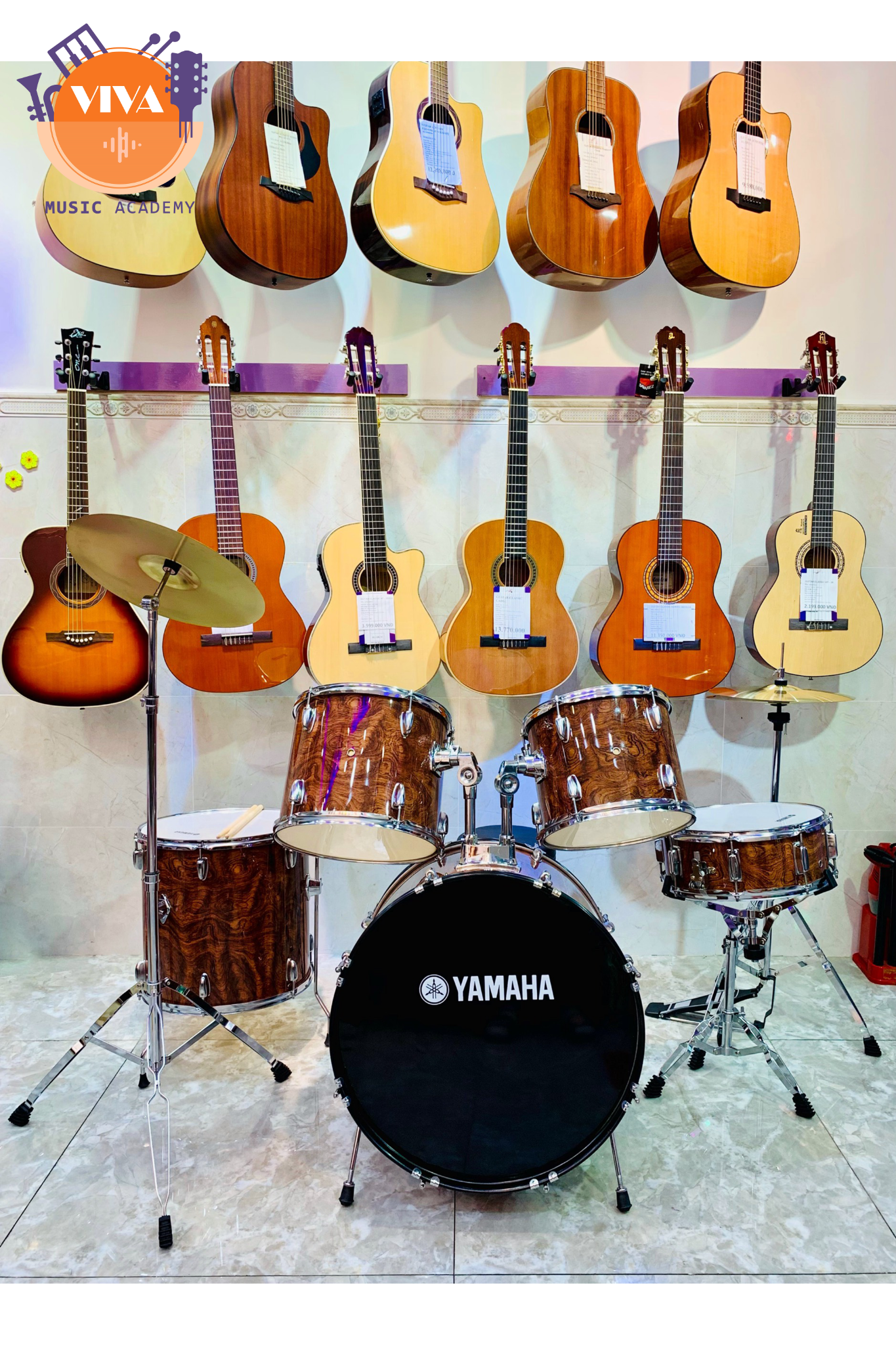 Floor tom , 2 hoặc 3 tom con: để tạo ra những âm thanh có tần suất cao thấp, trầm bổng khác nhau. Âm trống Tom sẽ cao hơn tiếng trống Bass.